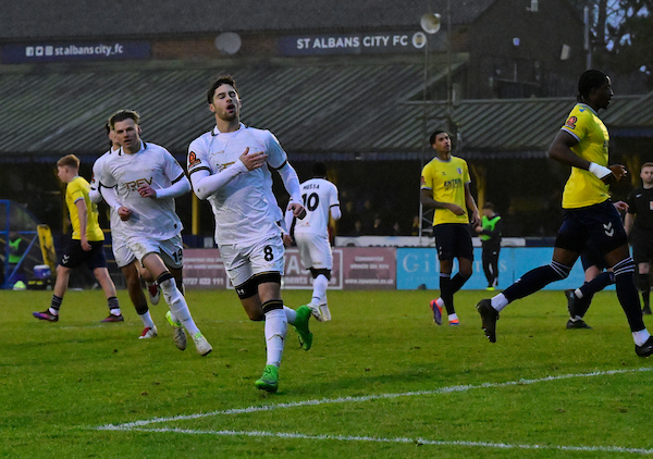 Twice the woodwork was struck – first through Dan Hayfield, then through Young, with the latter also firing wide in a one-on-one opportunity, as St Albans struggled to contain the former Yeovil wideman.