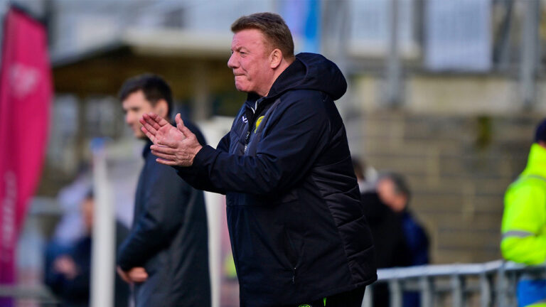 Ronnie Jepson reacts to United’s 2-1 win over Chesham at Plainmoor.