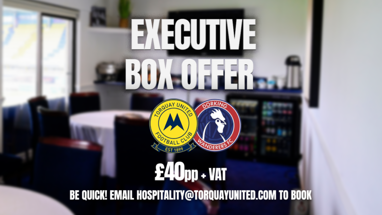 Due to a cancellation, you can enjoy an Executive Box experience at Plainmoor for just £40pp + VAT (inc. match