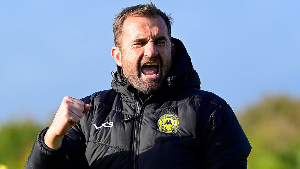 Pictured L to R: Mark Bowes-Cavanagh of The Bryn Consortium and Co-Chairman of Torquay United with Michael Westcott of The Bryn Consortium and Co-Chairman of Torquay United during The Bryn Consortium press call at Livermead Cliff Hotel, Torquay, Devon on Tuesday 14th May 2024 - PHOTO: Phil Mingo/PPAUK