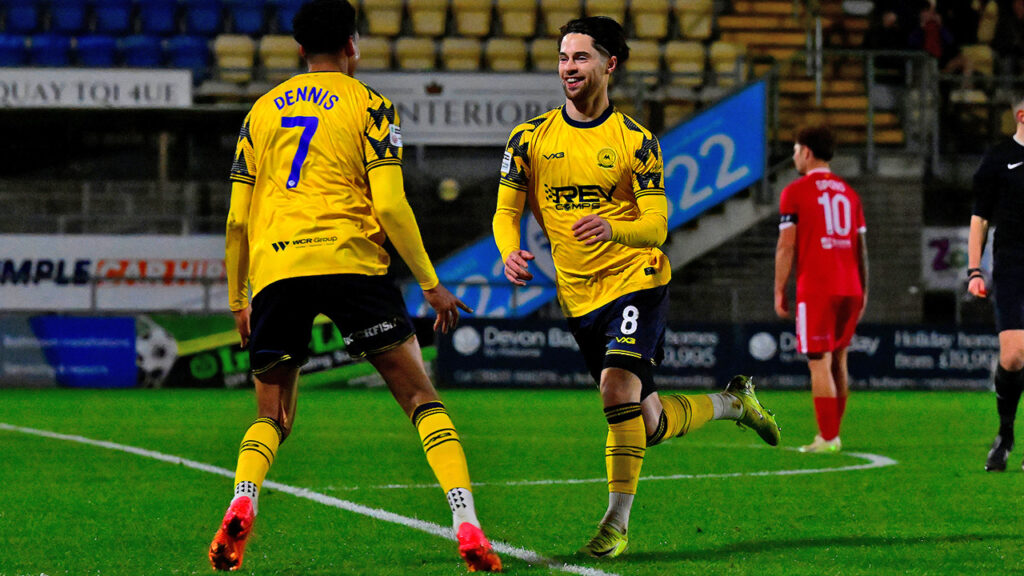 Torquay United players wear shirts with a poppy on for Remembrance Day during the National League South match between Torquay United and Hornchurch at Plainmoor, Torquay on Saturday 1st November 2025 - PHOTO: Frankie OKeeffe/PPAUK