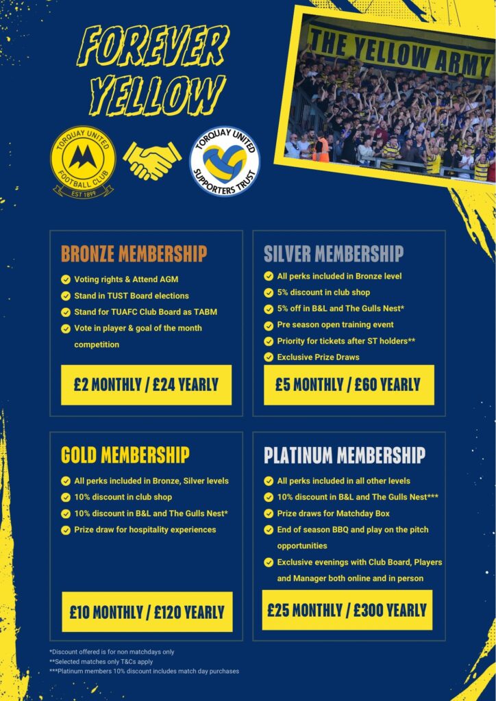 A brand new membership scheme from Torquay United FC and Torquay United Supporters Trust – built by supporters, for supporters.