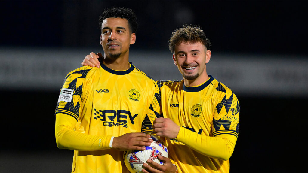 Dylan Morgan and hat-trick hero Louis Dennis react to United’s 7-0 win over Eastbourne at Plainmoor.