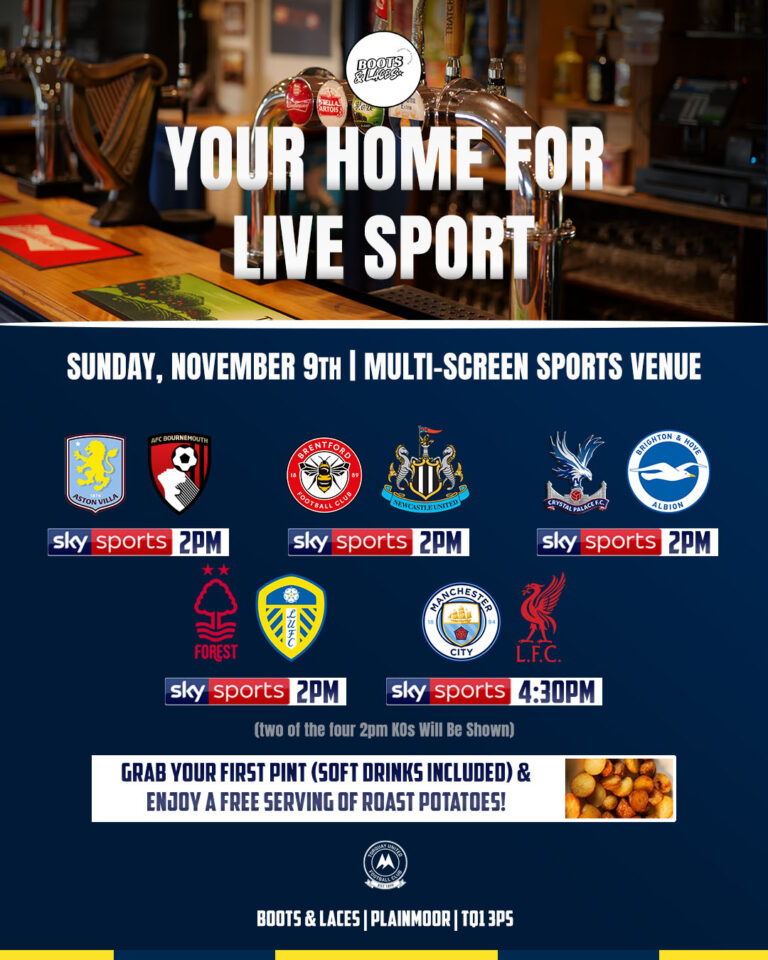 Sunday (09/11/25) sees a glut of Premier League fixtures at Boots & Laces and we’ve even added in a generous