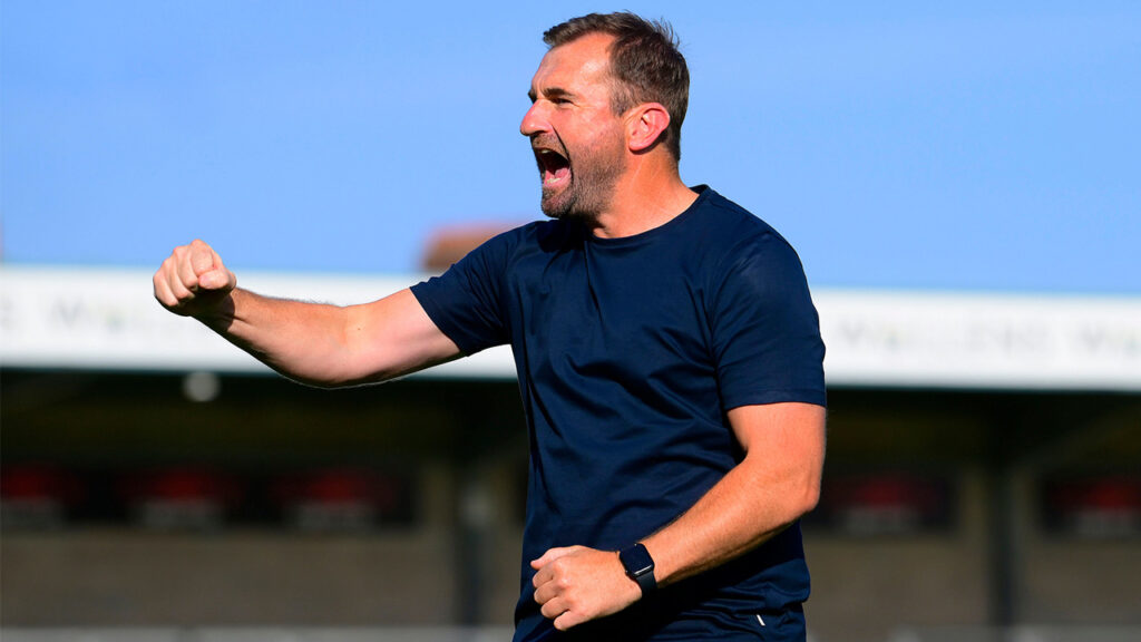 Paul Wotton reacts to watching his side win 4-2 at Plainmoor.