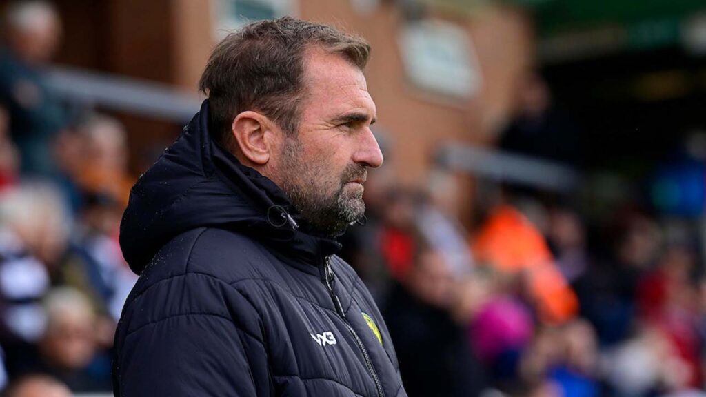 Manager Paul Wotton reacts to securing all three points away to Salisbury City in a 1-0 vistory.