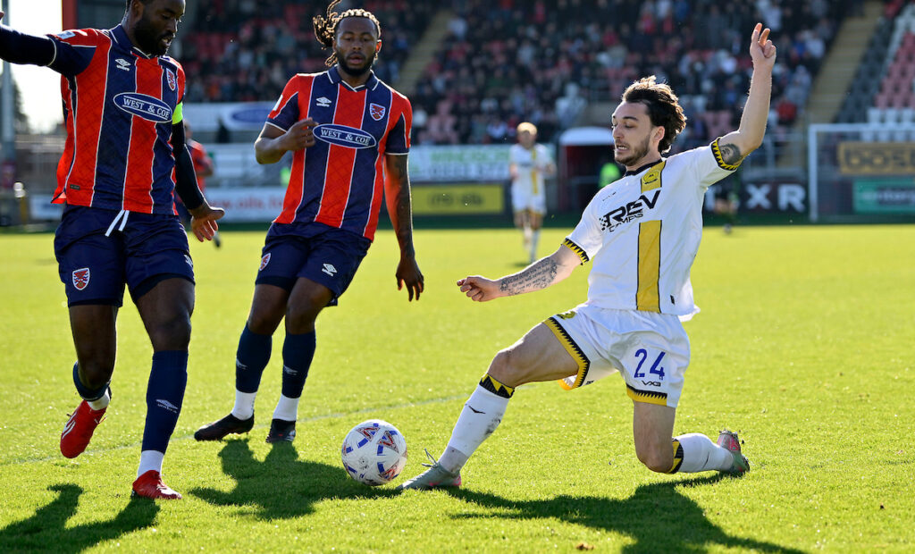 A spot of pinball inside the home penalty area saw Jay, Ed Palmer and Dyer all go close to forcing the ball home with a minute to spare, before Jay’s 25 yarder three minutes later forced Howes into a full-length parry, with Moore just unable to reach the loose ball in time.