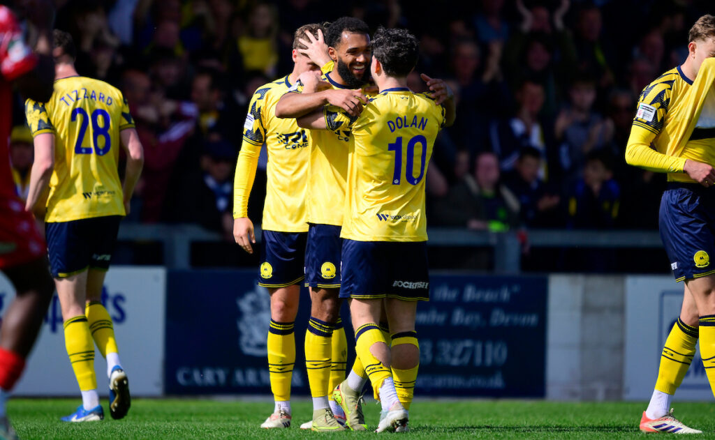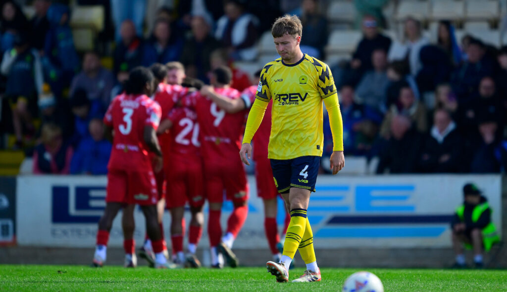Jordan Dyer of Torquay United looks dejected after conceding during the National League South match between Torquay United and Hemel Hempstead Town at Plainmoor, Torquay on Saturday 18th April 2026 - PHOTO: Frankie OKeeffe/PPAUK