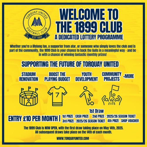 By entering the draw, you’ll not only be in the running for serious cash and exciting runners-up prizes, but you’ll also be directly supporting the future of Torquay United. Every penny of profit goes back into the club – from grassroots community work and stadium improvements to the team on the pitch.