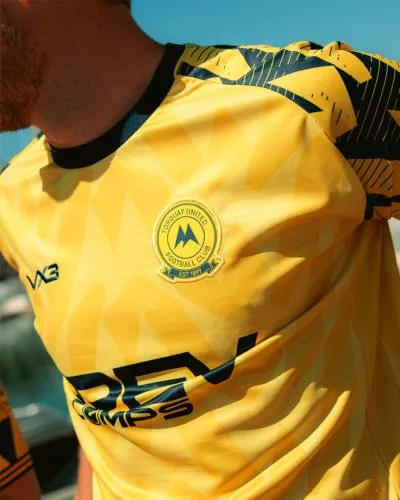 The Torquay United 25/26 Home Shirt stays true to the club’s iconic yellow, with a bold twist. Dynamic wing graphics run through the sleeves, celebrating the clubs identity with a modern edge.